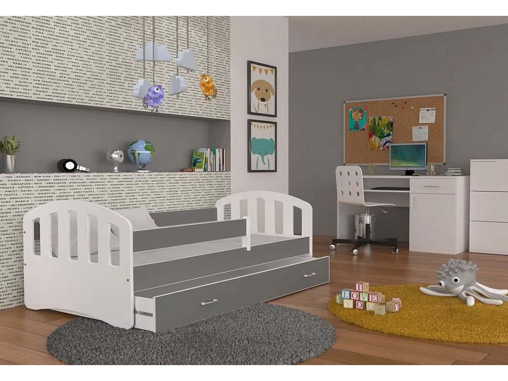 Dětská dřevěná postel Happy v krásných barevných kombinacích: bílá+šedá, bílá+modrá, bílá+hnědá havana, bílá+zelená,