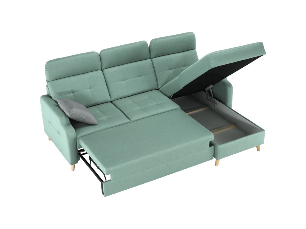 Univerzální, rohová, rozkládací sedací souprava s úložným prostorem BELMONT.