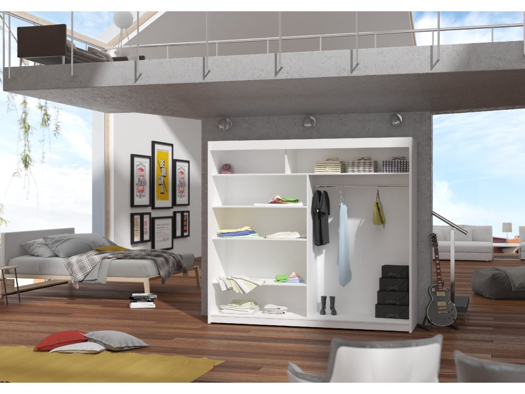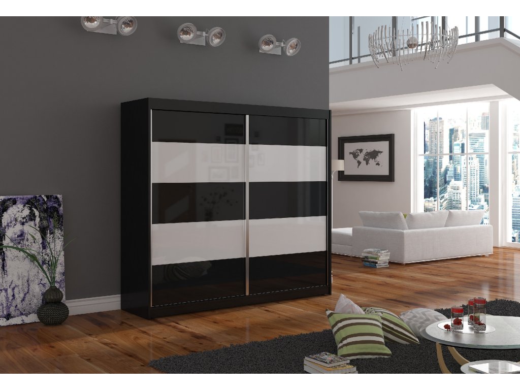Moderní šatní skříň Rosario. Skříň má posuvné dveře,dvoudveřové.