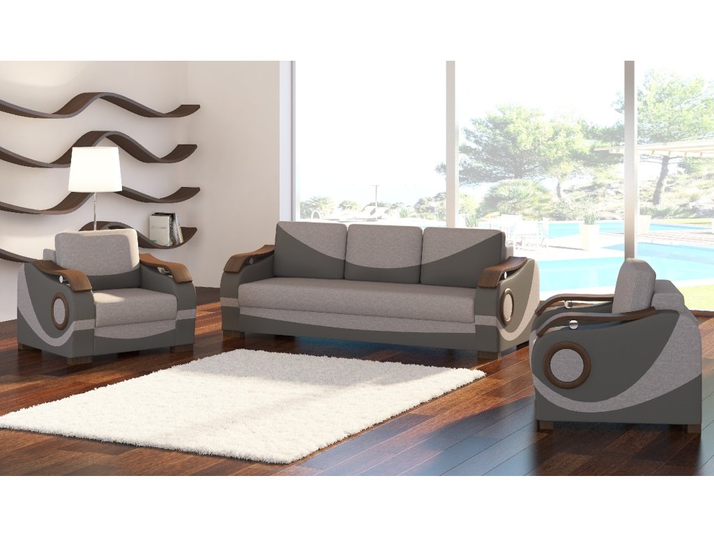 Jedinečná sedací souprava Puerto zaujme moderním designem a originálními dřevěnými područkami, které podtrhují originalitu sedací soupravy.
