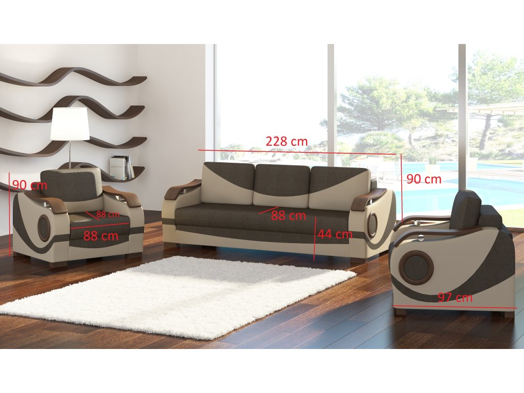 Podrobnější rozměry sedací soupravy naleznete ve fotogalerii.